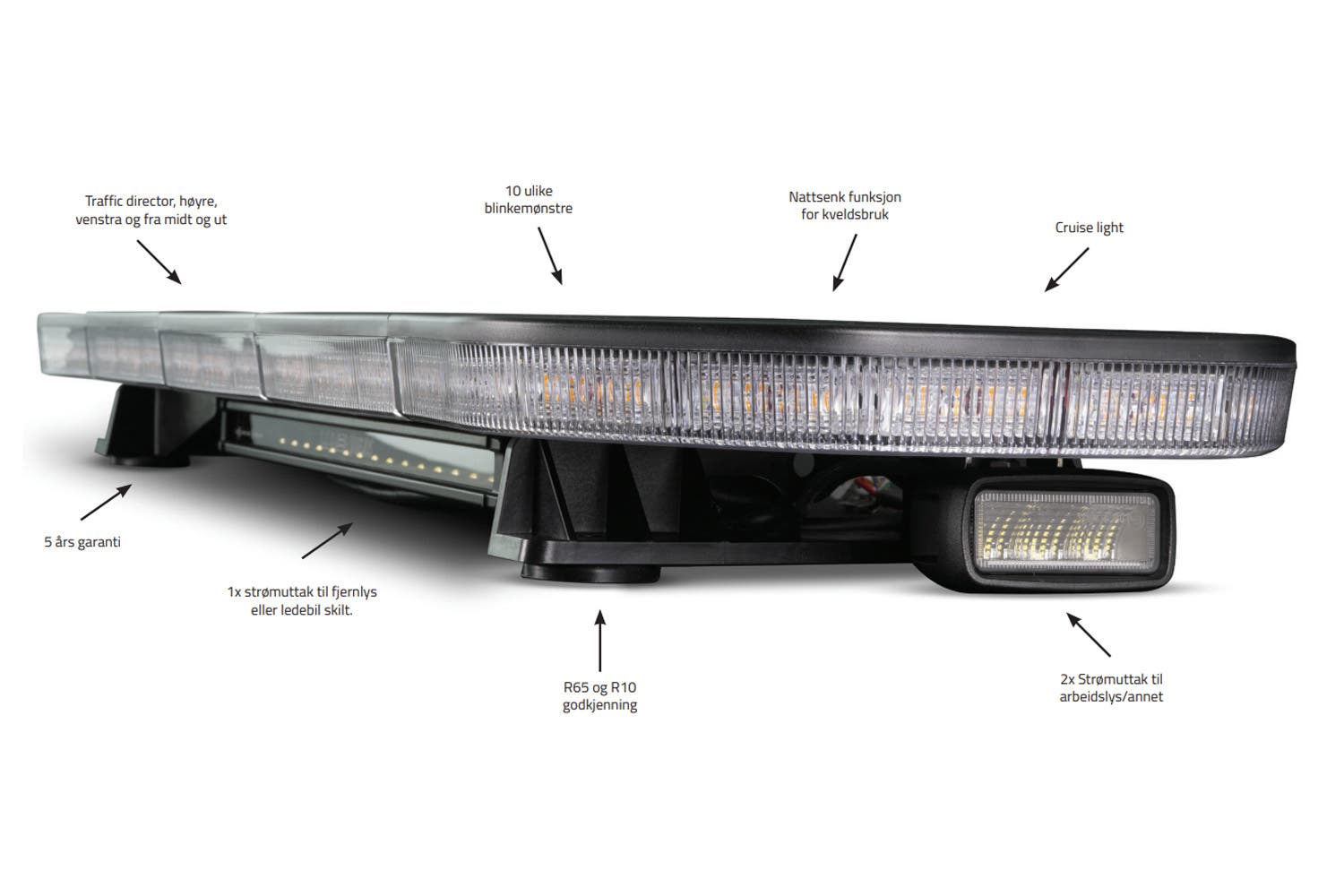 Balken är mycket enkel att koppla upp och styra. Balken levereras utan en kontrollpanel, men har istället en ledning med lösa ledare som styrs med styrströmssignaler, samt strömkablar för batteriet. Det finns en inbyggd minnesfunktion för blinkmönstret så att du kan välja din favorit och aldrig behöva byta den igen. Det kommer också att vara mycket enkelt att koppla upp en LED-bar fram och 2 stycken arbetsljus på sidorna.