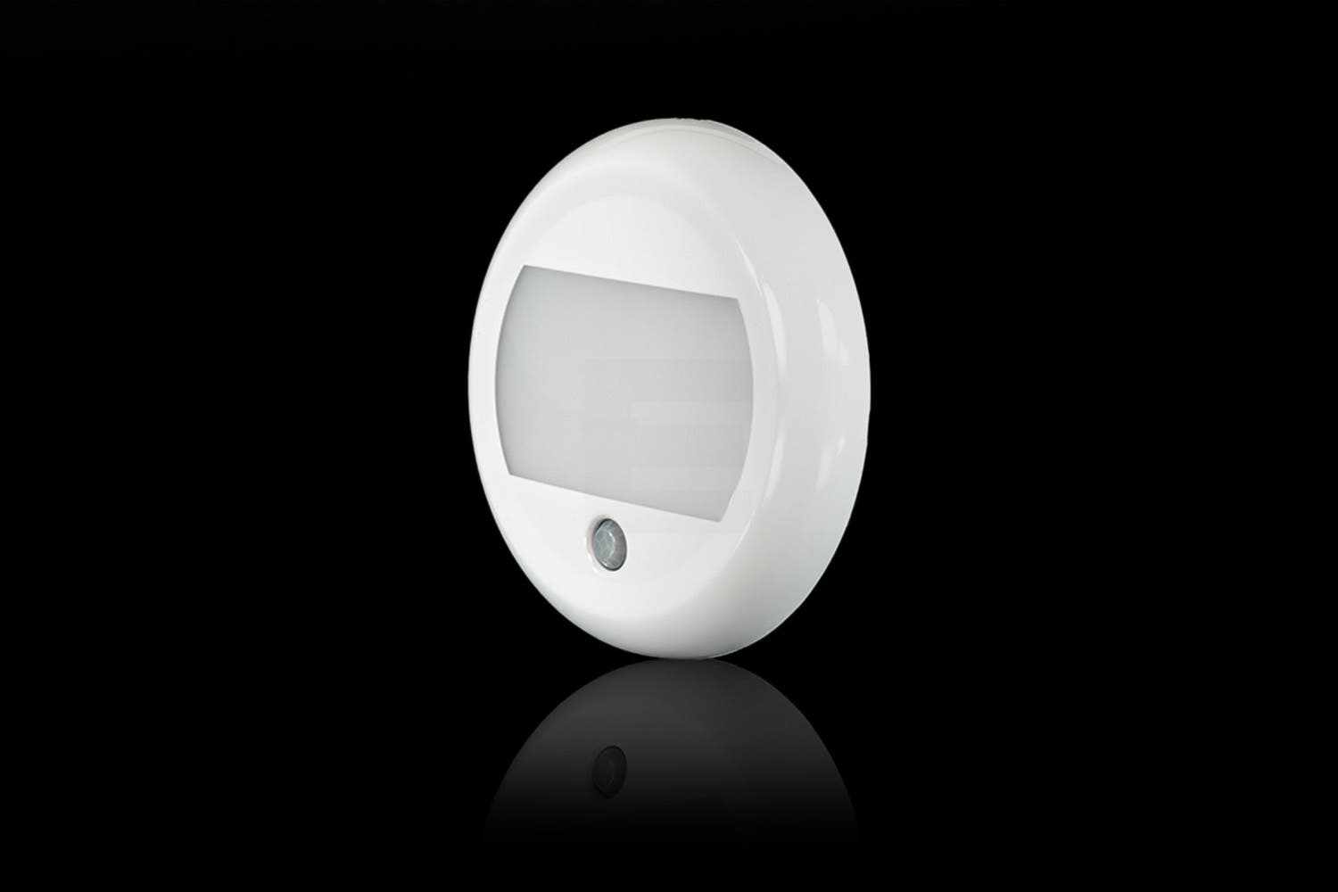 Lik standardversionen, men kommer att stänga av och på automatiskt om det finns rörelse framför sensorn. Genial lösning om man vill ha en lampa som automatiskt stänger av och på exempelvis runt ett arbetsområde. Stänger av efter 41 sekunder om det inte finns rörelse framför sensorn. Montering av lampan är mycket enkel, då den har avtagbart frontlock, under locket sitter det tre skruvhål på lampans ytterkant. Resultatet är en lågprofil och elegant montering utan synliga skruvar.
