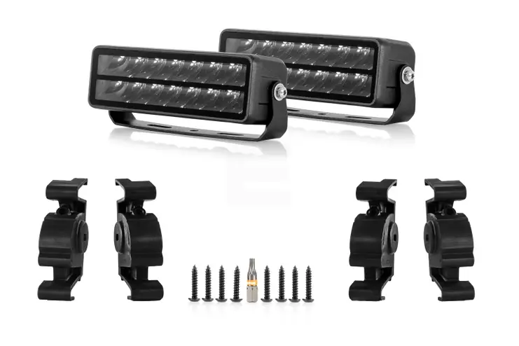 Ett modellanpassat grillkit är idealt när du söker en diskret montering som passar perfekt till din bil. Vanliga monteringar kan ha en tendens att sticka ut eller använda fästen som monteras på utsidan, men här får du en lösning som ger en sömlös integration av ljus, skräddarsydd för din bil. Installationen är enkel, och det är inte nödvändigt att ta av grillen. Skär bara ut ett hål i grillen, sätt in lamporna med fästen och skruva fast dem. Praktiskt och mycket tidsbesparande!