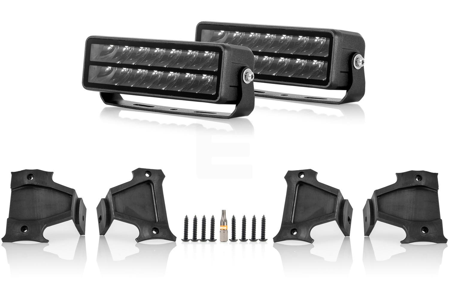 För en diskret och integrerad ljusmontering är ett modellanpassat grillkit det bästa valet. Med avancerad LED-teknik levererar extraljusen en imponerande ljusbild, som ger både bra bredd och lång räckvidd. Perfekt för svenska körförhållanden, där extra ljus kan göra en stor skillnad för sikten och tryggheten. Monteringen är enkel och kräver ingen demontering av grillen. Du gör ett hål i grillen, placerar lamporna med fästena och skruvar fast dem för en problemfri installation.