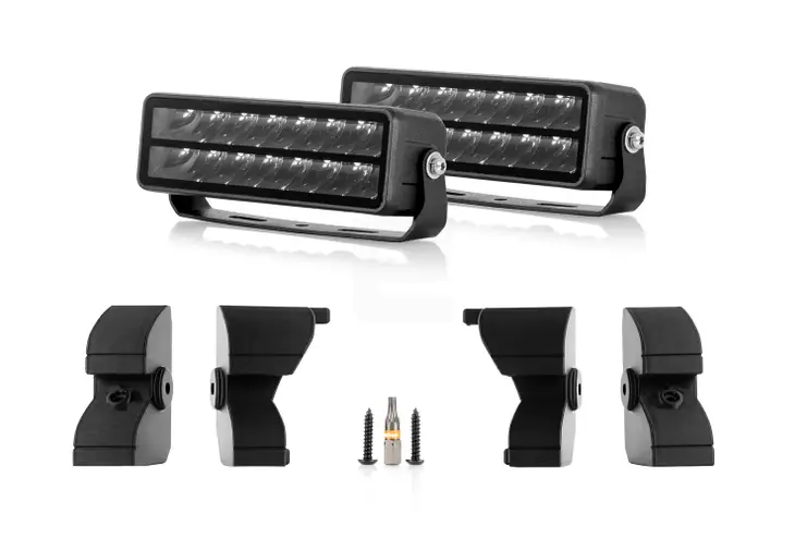 Ett modellanpassat grillkit är idealt när du söker en diskret montering som passar perfekt till din bil. Vanliga monteringar kan ha en tendens att sticka ut eller använda fästen som monteras på utsidan, men här får du en lösning som ger en sömlös integration av ljus, skräddarsydd för din bil. Installationen är enkel, och det är inte nödvändigt att ta av grillen. Skär bara ut ett hål i grillen, sätt in lamporna med fästen och skruva fast dem. Praktiskt och mycket tidsbesparande!